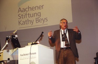 Das Aachener Forum - ein neuartiges Veranstaltungsformat zwischen Werkstattbericht und regionaler Wissensplattform. International bekannte Galionsfiguren der Nachhaltigkeitsbewegung standen der Stiftung zum Gedankenaustausch und für Anregungen bereit. Mit dem „Forum“ wollte die Stiftung die Öffentlichkeit am internen Denkprozess teilhaben lassen, bekannte Referenten konnten einem regionalen Publikum ihre Ansätze aus erster Hand erläutern.