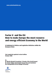 Wesentliche Weichen für die Weiterentwicklung gesetzlicher Rahmenbedingungen der Ressourceneffizienz werden auf der EU-Ebene gestellt. Aus diesem Grund hat die Stiftung gemeinsam mit Green Budget Germany, dem Sustainable Research Institute und Friends of the Earth im Jahr 2006 eine klar gegliederte Übersicht der aktuellen Initiativen und Prozesse in der EU zu Ressourcenproduktivität und Energieeffizienz erarbeitet. Das 157 Seiten starke Buch ist als Hilfe für alle konzipiert, die auf diesem Gebiet in einem europäischen Zusammenhang arbeiten, also Politiker, NGO's etc.