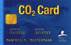 Welche Instrumente schaffen einen Anreiz zur Vermeidung von Umweltproblem wie dem Klimawandel und wirken gleichzeitig systemisch und lassen sich nicht umgehen, wie viele Emissionsgrenzwerte oder ähnliches? Für die vom Menschen verursachten CO2-Emissionen wurde ein Vorschlag von britischen Umweltforschern aufgegriffen und modifiziert: Die CO2-Card. Diese wirkt wie eine Kreditkarte. Im Unterschied zu dieser geht es nicht um Geld, sondern um Emissionsrechte für CO2. Zunächst wird jedes Jahr eine sinkende Anzahl von existierenden CO2-Emissionsrechten festgelegt. Davon erhält jeder Bürger jeden Monat ein Kontingent, das auf einem CO2-Konto landet. Abbuchungen von diesem Konto sind immer dann nötig, wenn Treibstoffe für das Auto oder Energie in Form von Gas oder Heizöl fürs heimische Heizen eingekauft werden. Überschüssige CO2-Emissionsrechte können verkauft werden. Braucht man mehr als zugewiesen wurde, muss man Rechte dazu kaufen. Die CO2-Card ermöglicht den Verzicht auf zahllose andere und aufwändige Politikmaßnahmen, weil sie die Garantie für das Einhalten der Emissionsziele quasi eingebaut hat. Je weniger die Gesellschaft auf Kurs ist, desto teurer werden CO2-Emissionen, umso mehr Maßnahmen lohnen sich finanziell.